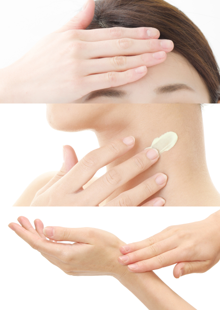 顔全体、首、手までたっぷりと
